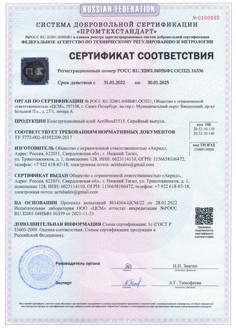 ACRIBOND 3515 — двухкомпонентный конструкционный акриловый клей с соотношением компонентов 10:1.